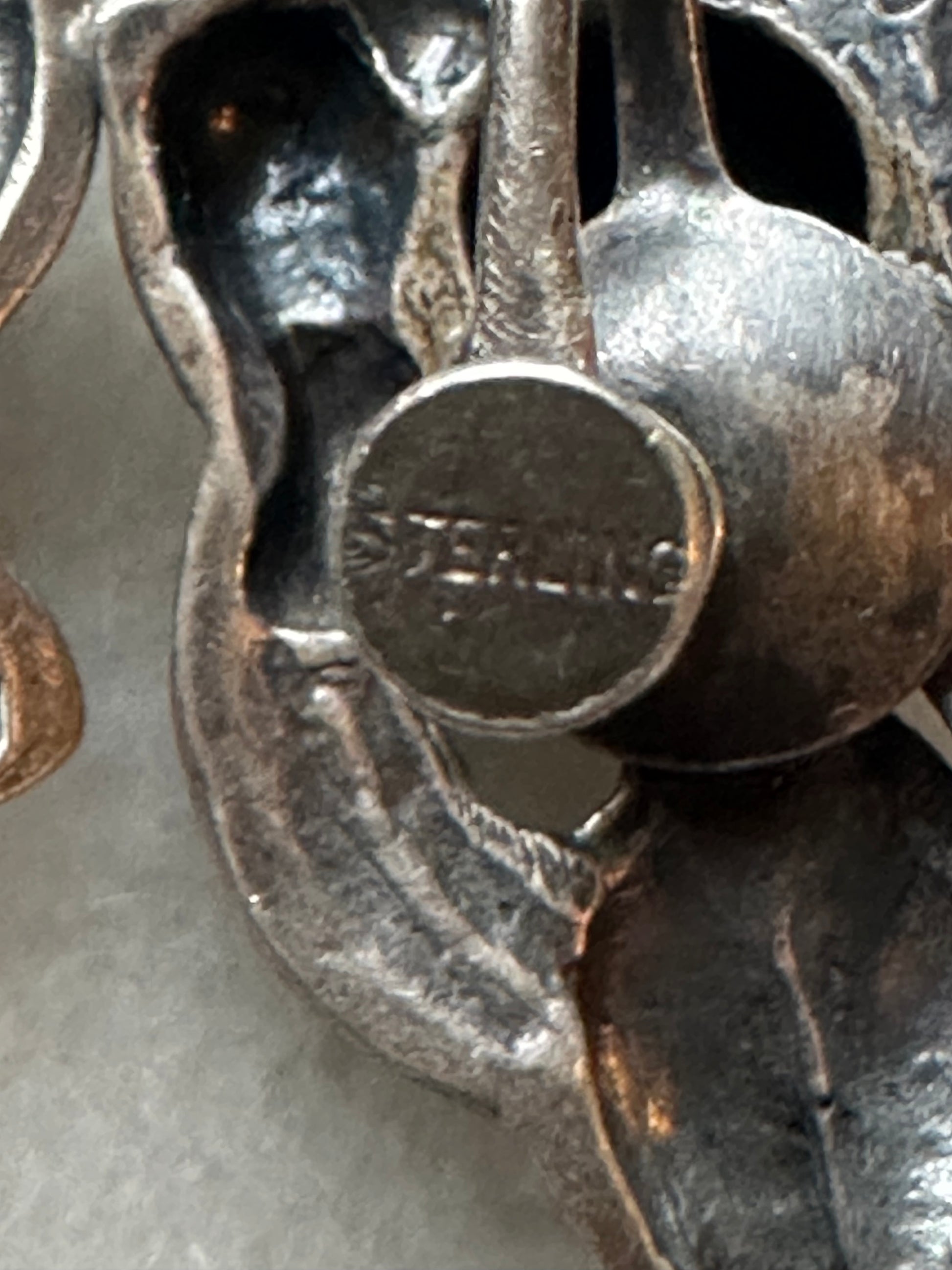 Art Nouveau Sterling Silver Floral Screwback Earrings