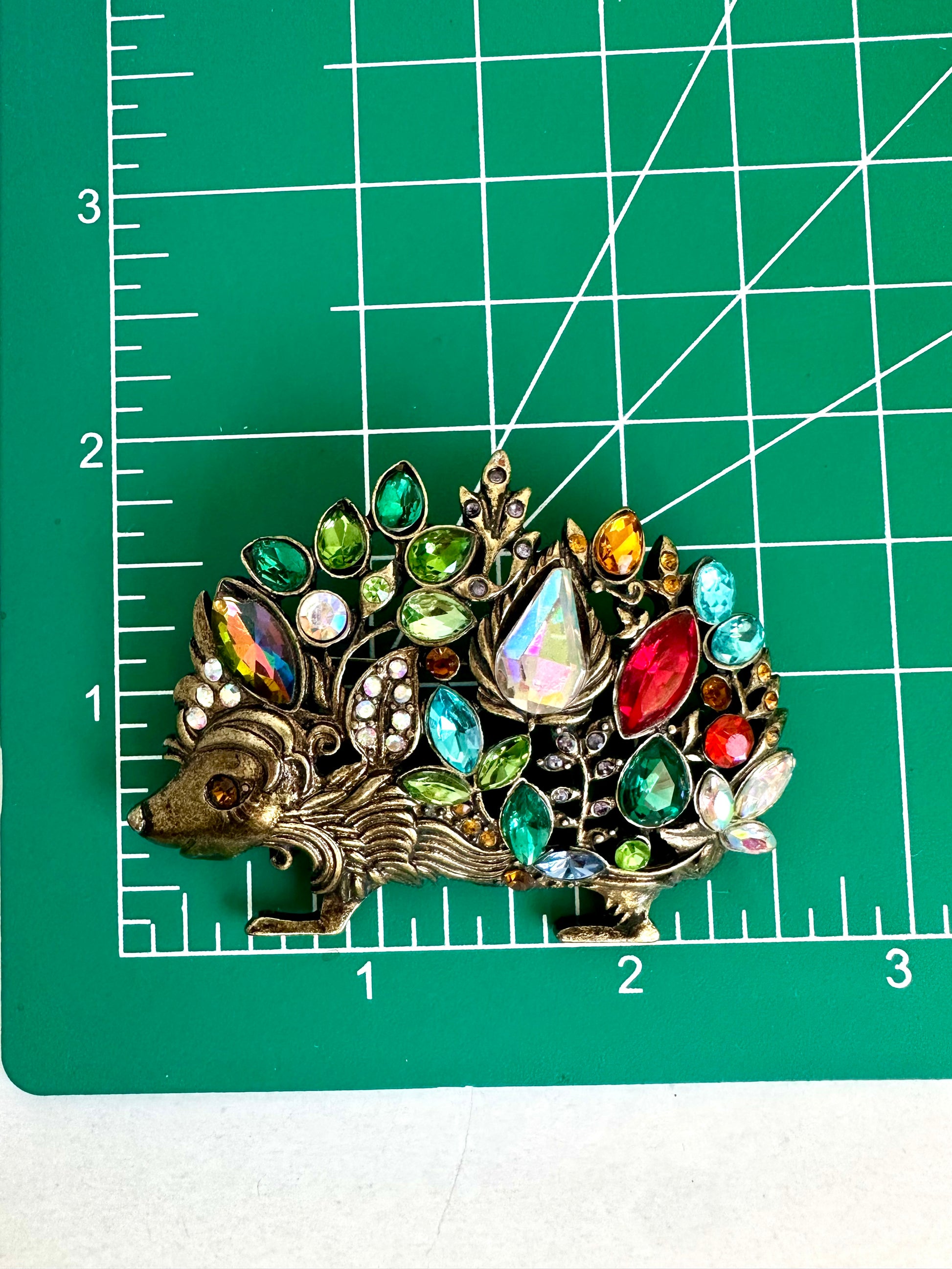 Multicolor Rhinestone Hedgehog Brooch Antiqued Goldtone Rhinestone Animal Pin