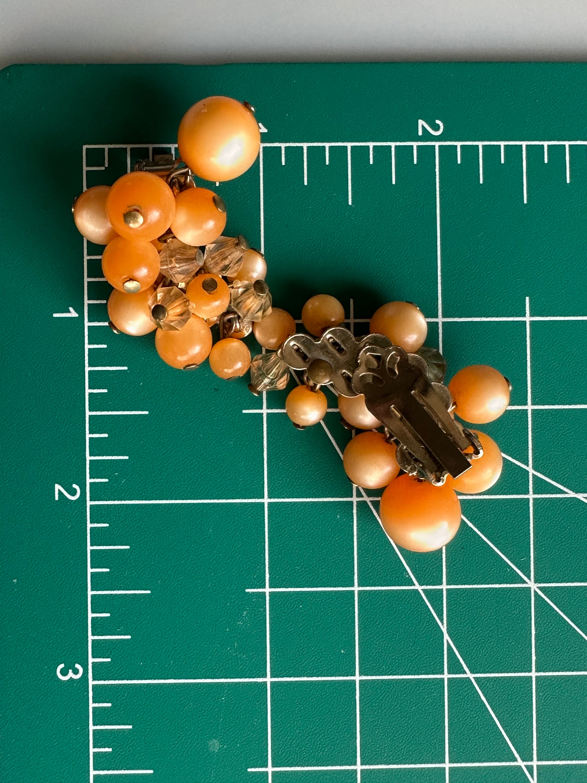 Vintage Beaded Climber Clip On Earrings Plastic Retro Dangling Peach Moonglow