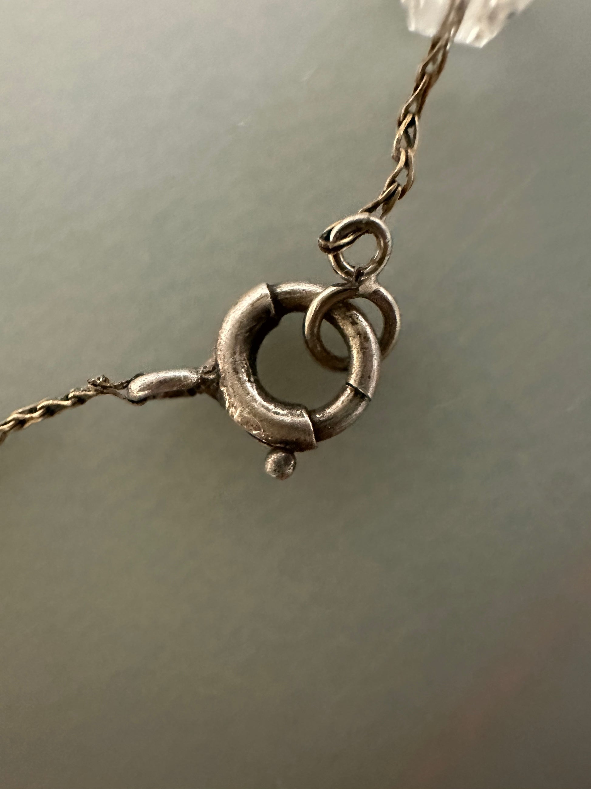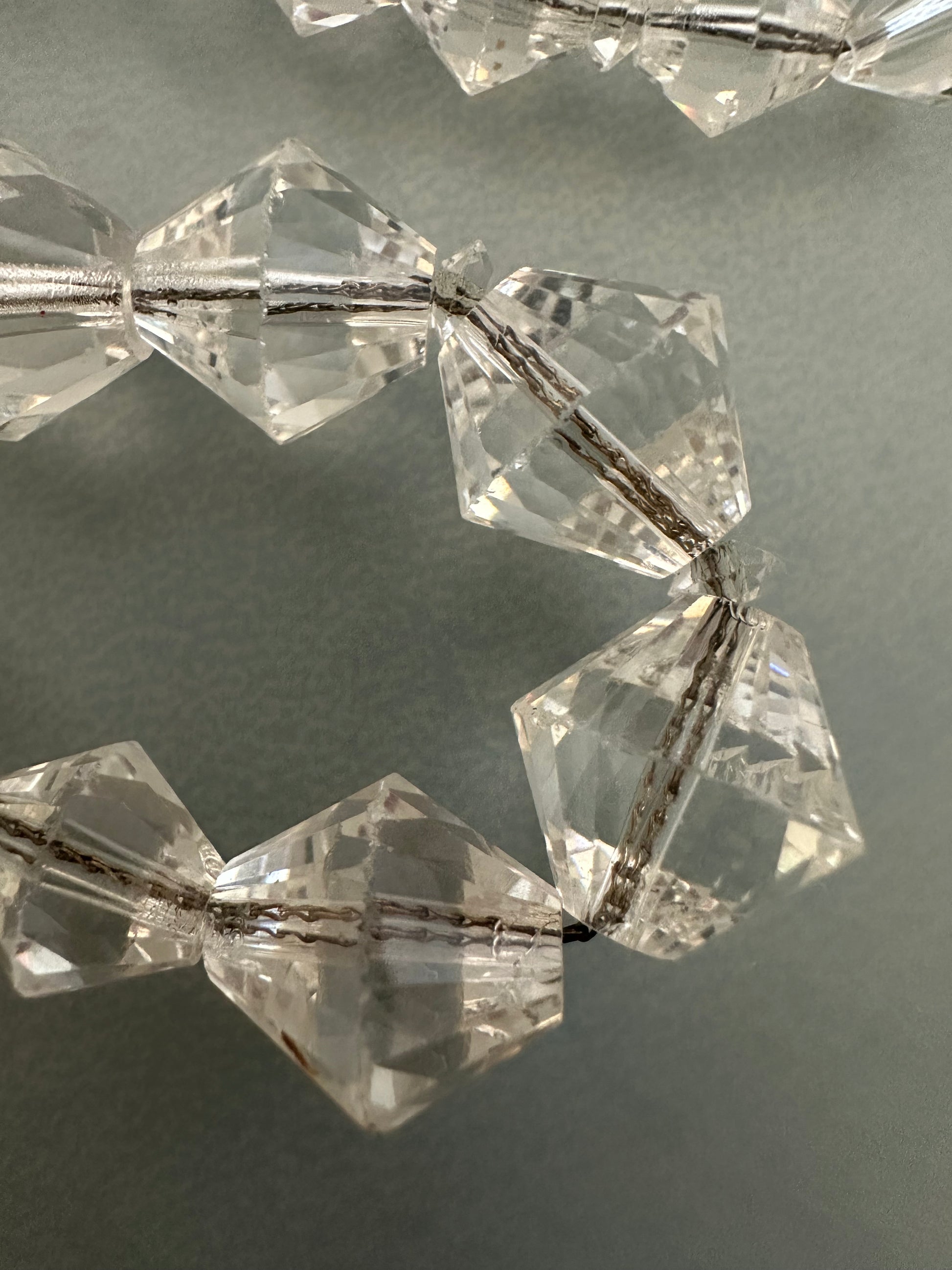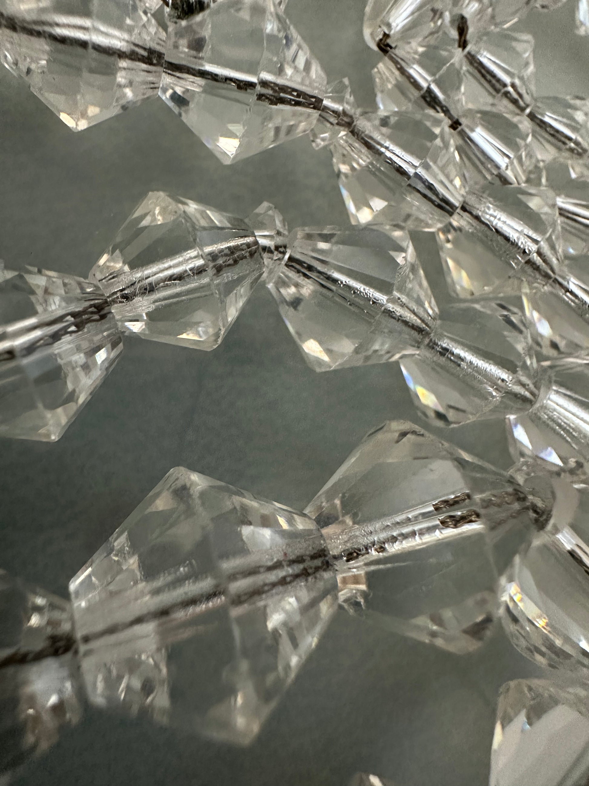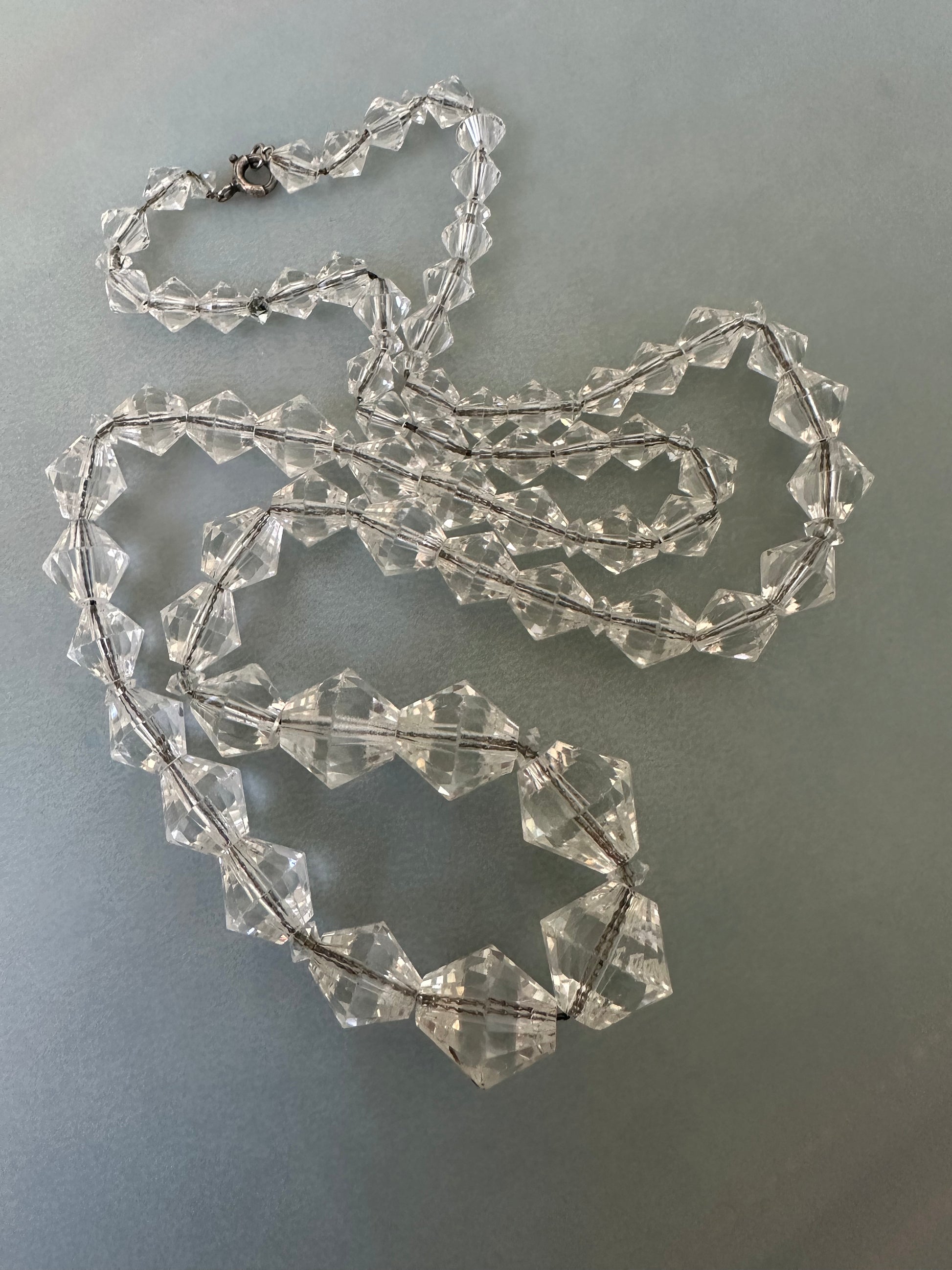 Vintage Art Deco Clear Crystal Bicone Beaded Necklace On Sterling Chain